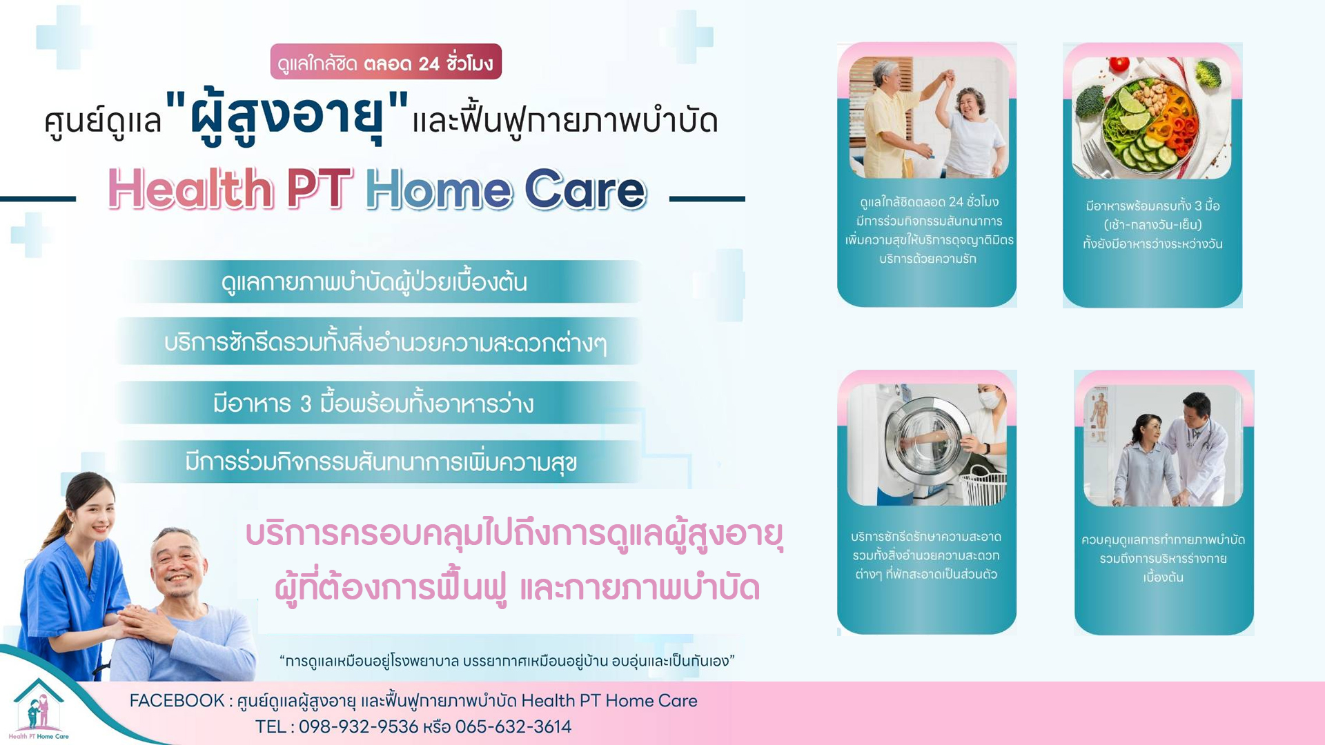 บริการครอบคลุมไปถึงการดูแลผู้สูงอายุ ผู้ที่ต้องการฟื้นฟู และกายภาพบำบัด