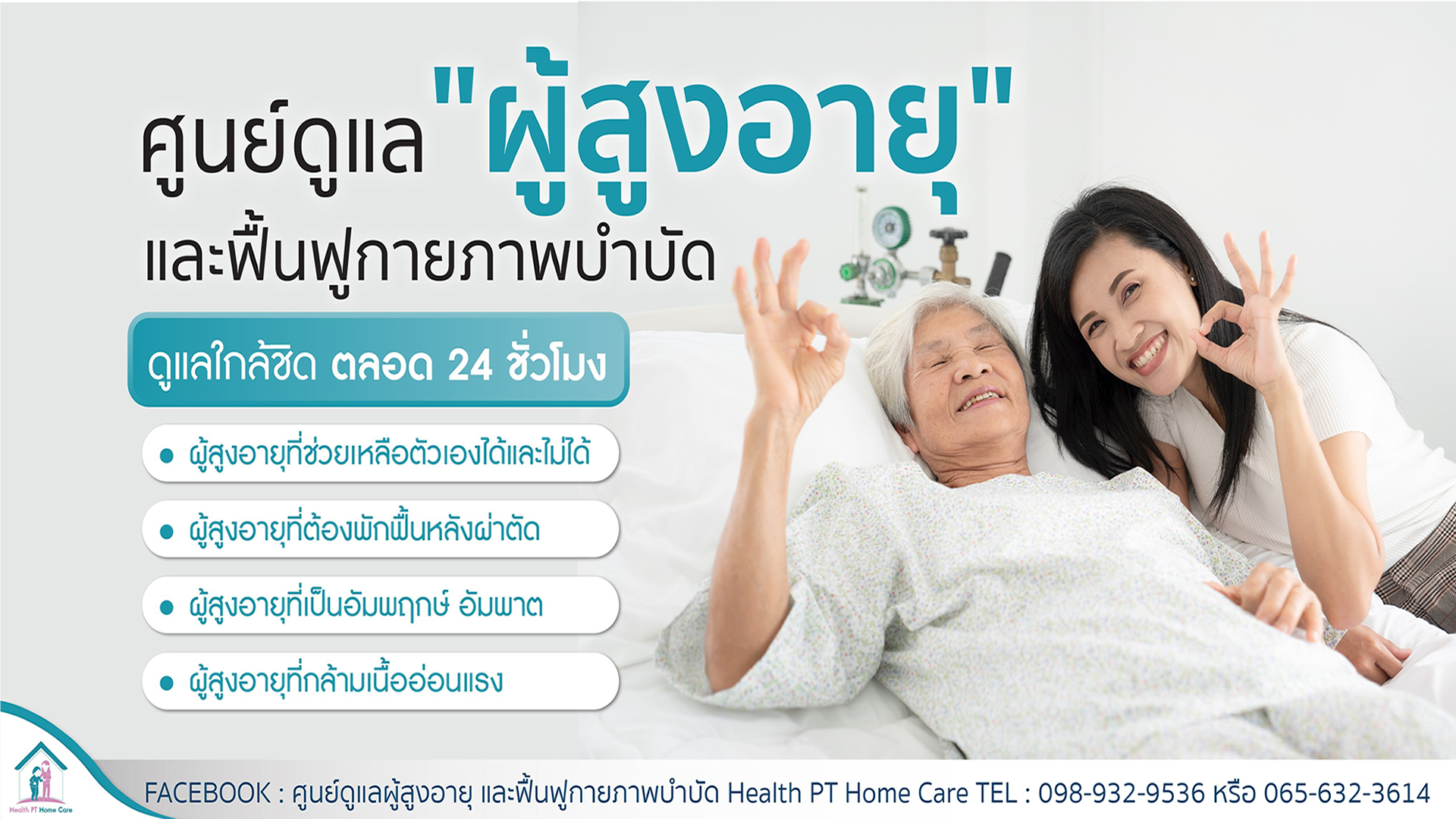 บริการครอบคลุมไปถึงการดูแลผู้สูงอายุ ผู้ที่ต้องการฟื้นฟู และกายภาพบำบัด