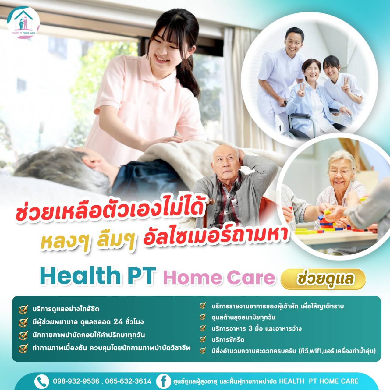 ศูนย์ดูแลผู้สูงอายุ และฟื้นฟูกายภาพบำบัด Health PT Home Care ให้บริการดูแลพักฟื้นและทำกายภาพบำบัด ผู้สูงอายุหรือผู้ป่วยที่ต้องการการฟื้นฟูและกายภาพหลังการผ่าตัด เปลี่ยนข้อเข่า ข้อสะโพก ผู้ป่วยโรคหลอดเลือดสมอง ผู้ป่วยอัมพฤกษ์ ผู้ป่วยอัมพาต ผู้ป่วยได้รับอุบัติเหตุ บาดเจ็บไขสันหลัง อาการปวดหลังและภาวะกล้ามเนื้ออ่อนแรงต่างๆ